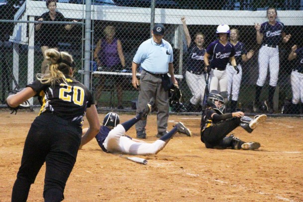After Alyssa Hames drew a walk, Sammi deNeui delivered a hit to right that scored Hames from first as the tying run.