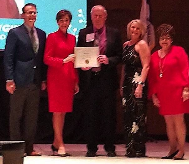 Jim Hillygus of Conrad was recognized with an Outstanding Volunteer Award at a recent Main Street Iowa ceremony in Des Moines and honored by Governor Kim Reynolds.